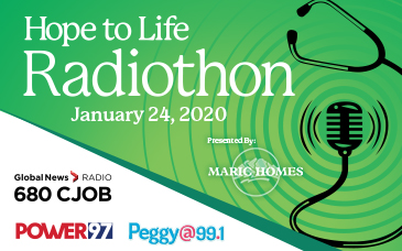 Power 97 is proud to support the Health Sciences Centre Foundation Hope to Life Radiothon presented by Maric Homes.