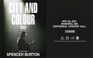 Power 97 presents City and Colour at The Centennial Concert Hall on November 30th, 2021.