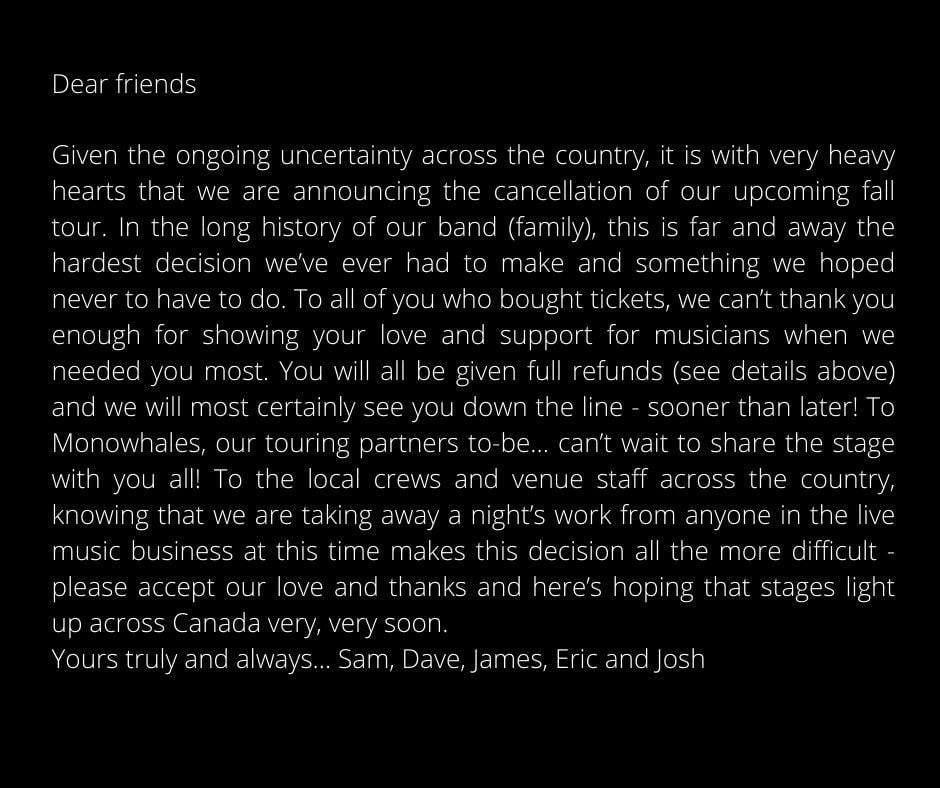 On October 16, 2021, Sam Roberts Band released their seventh studio album All Of Us, amidst