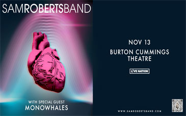 Power 97 presents Sam Roberts Band at The Burton Cummings Theatre on Saturday, November 13th.