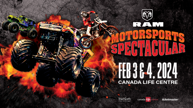 WINNIPEG, Nov. 28, 2023 – Canada Life Centre will host monster trucks, quads and more when the Ram Motorsports Spectacular returns to Canada Life Centre for three shows, Saturday, Feb. 3 at 1 p.m. and 7 p.m. and Sunday, Feb. 4 at 2 p.m. Tickets for kids 12 and under are just $15 plus fees, with other tickets starting at $25 plus fees. All shows go on sale on Friday, Dec. 1 at 10 a.m. at ticketmaster.