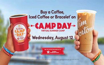Tim Hortons Restaurants Power 97 is proud to support Tim Hortons Camp Day on Wednesday, August 12th, 2020.