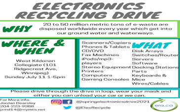 Various Bring your end of life electronics to be recycled at various locations throughout April and May!