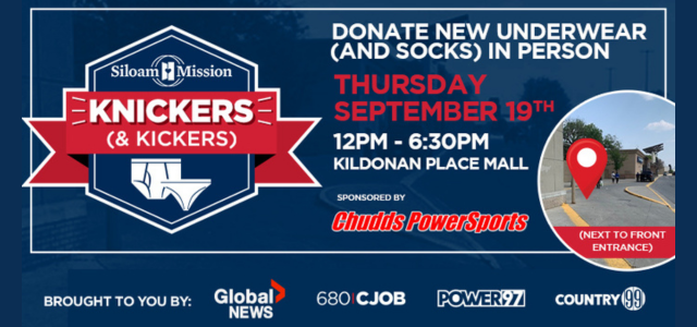 Kildonan Place and CF Polo Park Power 97 and Chudd’s Powersports are teaming up for Knickers & Kickers in support of Siloam Mission on Thursday October 17th from 7am to 7pm outside Kildonan Place and CF Polo Park.