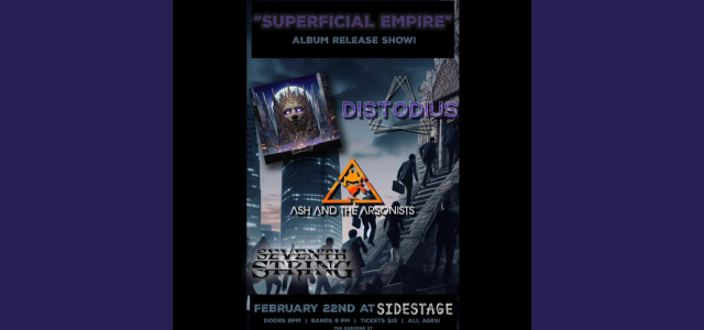 Distodius “Superficial Empire” CD Release Show with Ash And The Arsonists and Seventh String