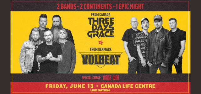 Canada Life Centre Power 97 is excited to welcome Three Days Grace and Volbeat to Canada Life Centre on Friday, June 13th, 2025 for a co-headlining tour with special guests Wage War!