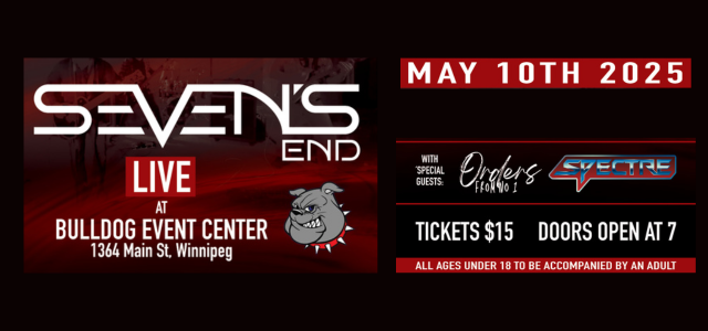 Bulldog Event Center Power 97 is excited to help promote the Seven’s End show LIVE at the Bulldog Event Center with special guests Spectre and Orders from No 1 on Saturday, May 10, 2025!
